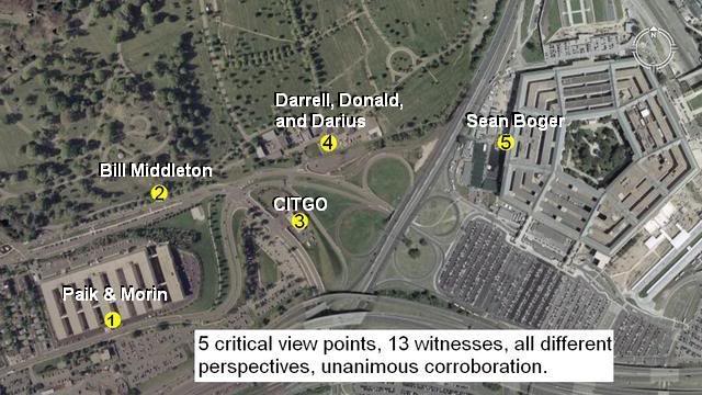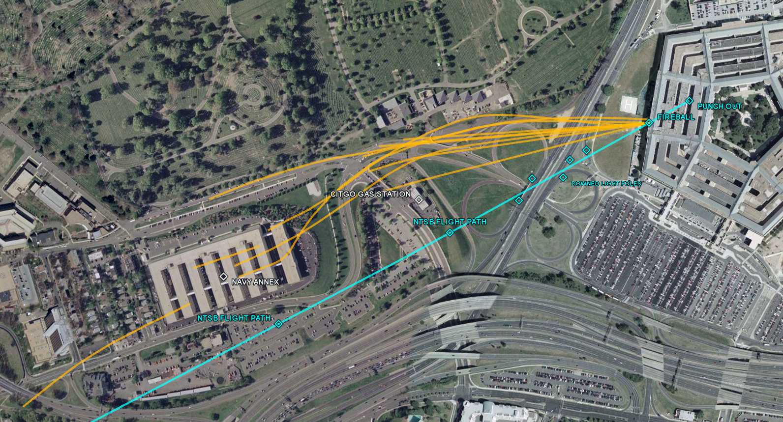 Could it be because the plane flew north of the Citgo gas station, as independently confirmed by all known witnesses who were in a position to see the station and judge this (over a dozen), including ALL known witnesses ON the gas station property, did not hit the light poles, and did not hit the Pentagon?
