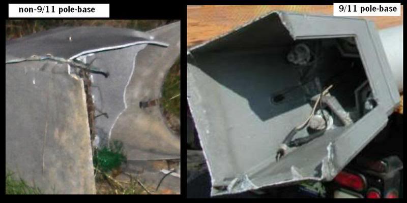 - that the base of at least one of the downed light poles was perfectly smooth, as though the damage had been prefabricated by a torch.