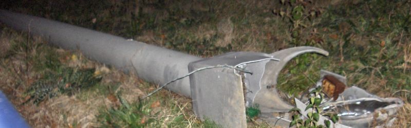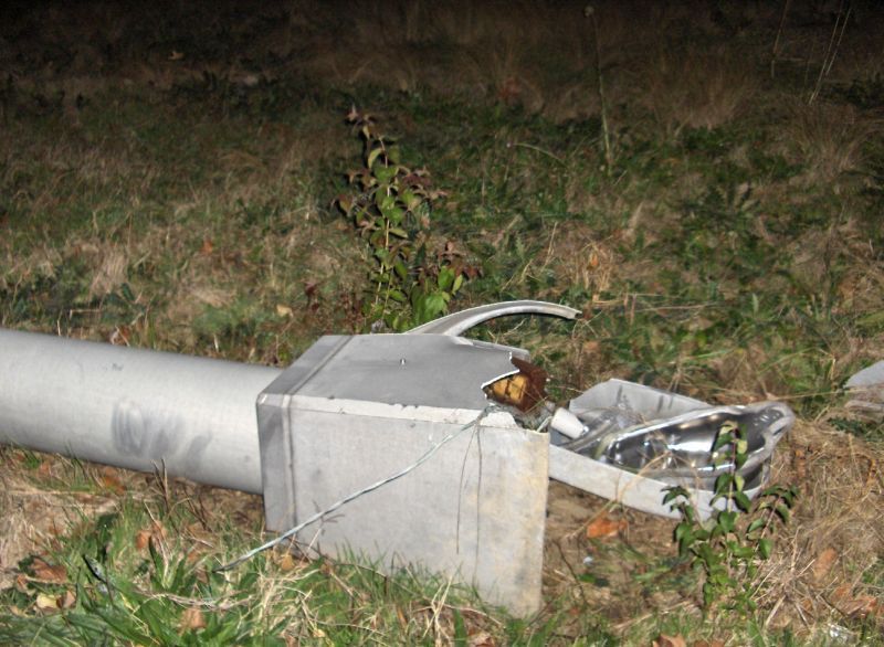 Furthermore, here is a comparison between the damage to the base of Pole 4 and the same style "break-away" base of a pole from the same area that was blown over by wind.